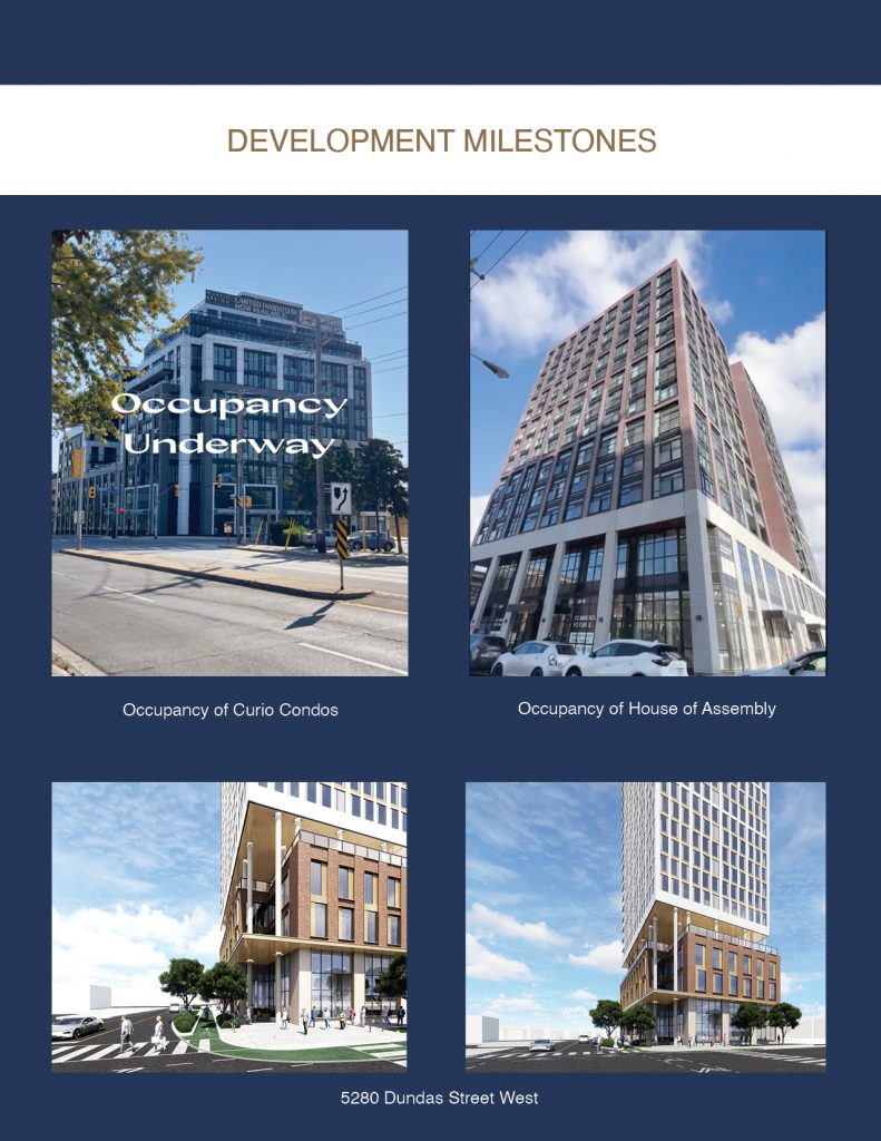 We also achieved a significant planning milestone with Toronto City Council’s approval of the zoning by-law amendment for 5280 Dundas Street West. Located steps from the Kipling Transit Hub, this future Etobicoke community reflects our continued focus on delivering high-density, transit-oriented housing in well-connected urban nodes — supporting long-term growth, mobility, and livability across the GTA.